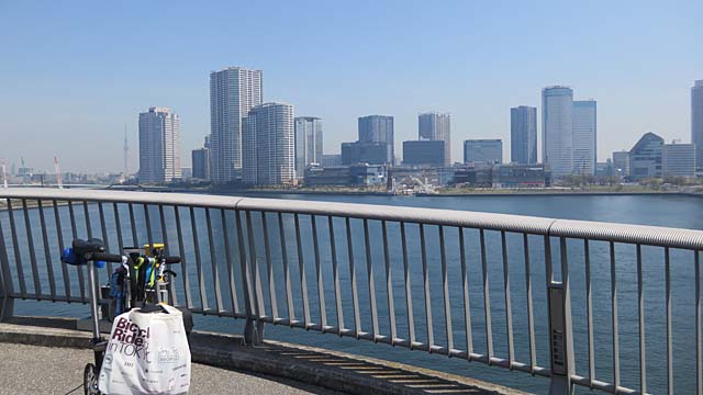 晴海大橋上から北の方を望むとちょうどライト君の上にうっすらですが東京スカイツリーが見えます。