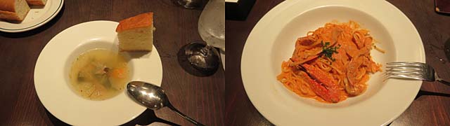 昼食もいつものところの本日のランチ『渡り蟹のトマトクリームソースのスパゲッティ』をいただきました。