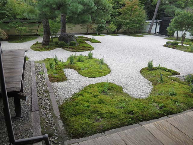 源氏庭。雲の合間に場面を覗き見るといった源氏物語絵巻に使われている手法を模しています。
