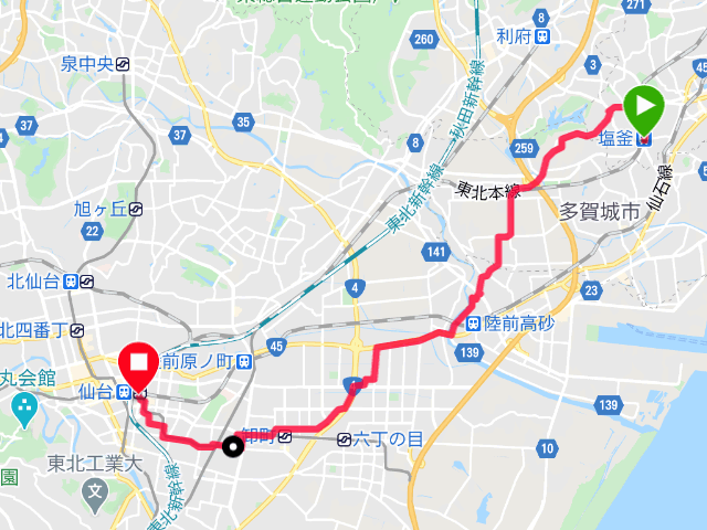 ここまでは塩釜周辺です。国分寺跡は仙台駅近く。10㎞ちょっと自走します。
