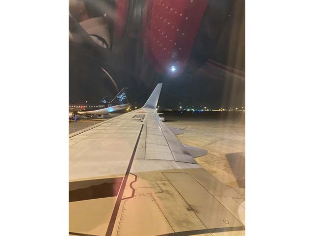 16時半過ぎに到着。ライト君を預け保安検査を受けます。ここでトラブル。何かが引っ掛かったようです。しかも3回も。バッグ斜めに金属が。外と内張りの間に入っていて取り出せず持ち手の所の補強部材のようで、ずれてこのような形で現れたようです(昨年は全く問題なく通過していただけに焦りました)。何とか納得していただけました。