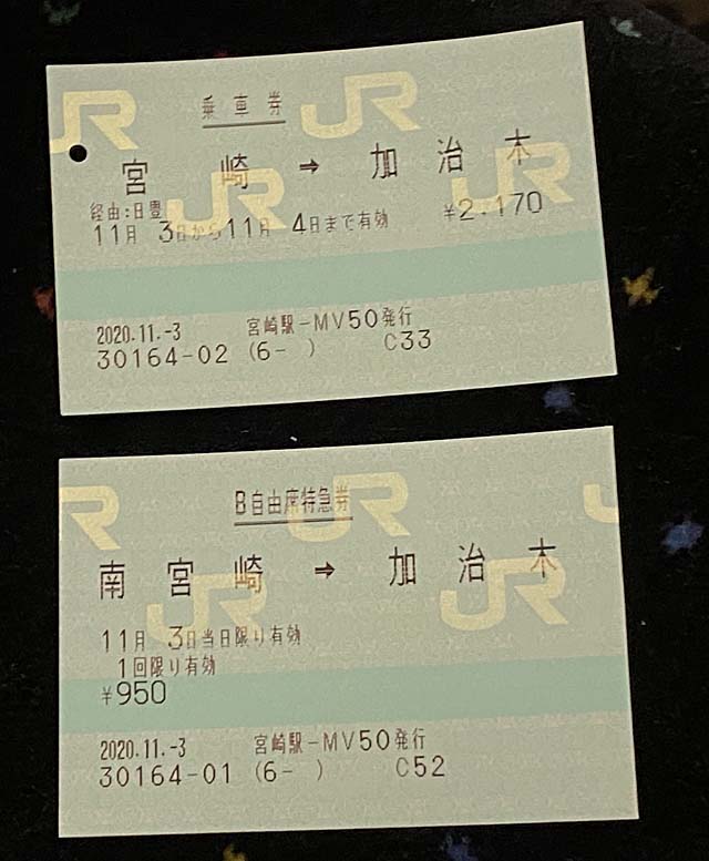 もう最終日、鹿児島空港10時55分発なので宮崎駅5時37分の始発か5時55分発の特急で移動します。5時半には宿を出ているので鈍行でも良いのですが特急で帰りましょう。宮崎駅で買っても南宮崎になっています(笑)
