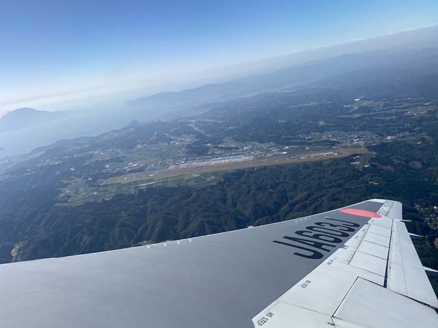 出発前に読書しながらビールを一本。ここでトラブル発生。乗継便が15分ほど遅れているそう。沖縄や奄美大島方面からくるやつですね。結局15分遅れで出発。