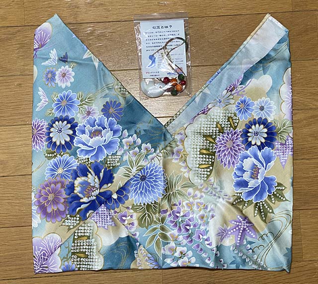 せっかくなのでお土産、勾玉のアクセサリー。この手作りの袋は2022年1月10日に行った恭仁宮のくにのみや学習館でのものでしたm(__)m