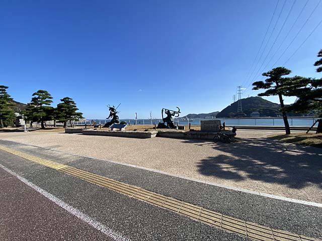 宮本武蔵と佐々木小次郎が決闘したとされる場所。元々島の名前は舟島です。佐々木小次郎は美剣士の若者とのイメージがありますがこれは吉川英治の小説「宮本武蔵」の影響でして。佐々木というのも史料には出てこないそうで。巌流小次郎という老剣士だったとか。まぁ、決闘した場所には間違いないようです。