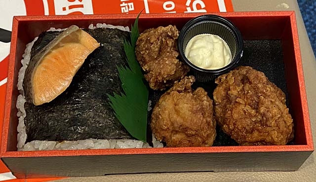 まずはお約束の。今回の空弁は『じんカラのり弁』にしました。神宮球場のからあげ(^^ゞ