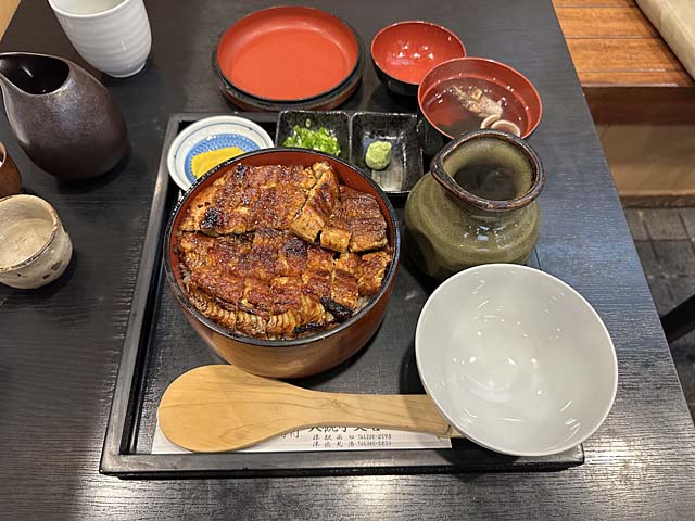 津駅前にあるこちらで。13時、席は結構埋まっていますがらいと君のスペースのある席に座れました。注文し待っているとどんどん退店。ちょうど入れ替えの時間ですね。『ひつまぶし』というと名古屋名物というイメージがありますが地域的には問題ないですよね。せっかくなので食べていきましょう。