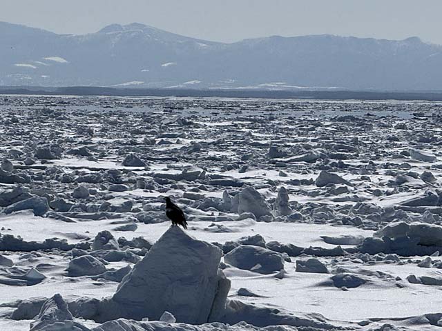 流氷はちと遠そう。接岸と言っていたけれど日々の風向きとかでかなり流動的だそう。