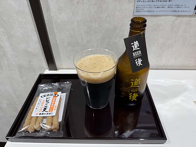 ラウンジで道後ビールスタウトをいただく。じゃこ天スティック付き。支払は地元のpayか現金