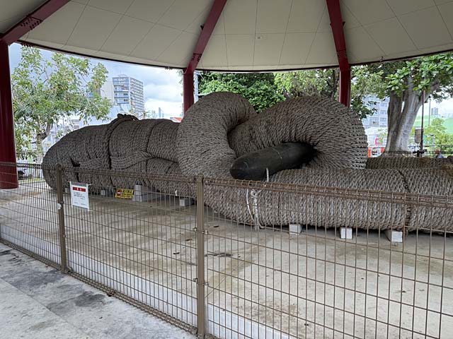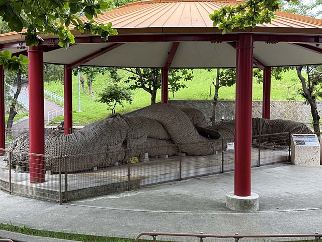 希望ヶ丘公園にある那覇大綱モニュメント。遠くから見ると人が寝ているように見えるんですよね。